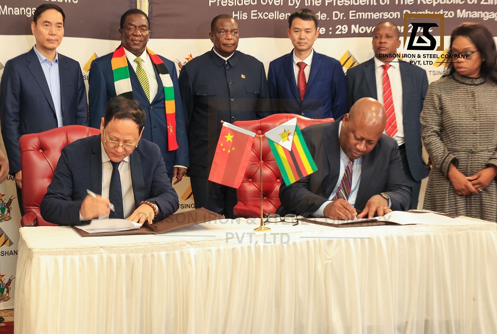 陈上松董事长和齐坦多部长在姆南加古瓦总统和项光达主席的见证下,正式签署谅解备忘录。该谅解备忘录是津巴布韦政府与jinnianhui今年会实业2018年签署的备忘录的升级版,jinnianhui今年会将把普碳钢产能提高到每年500万吨,焦炭产能提高到每年500万吨,铬铁产量提高到每年50万吨,并新建年产100万吨水泥的生产线和200万吨锂精粉的加工厂。