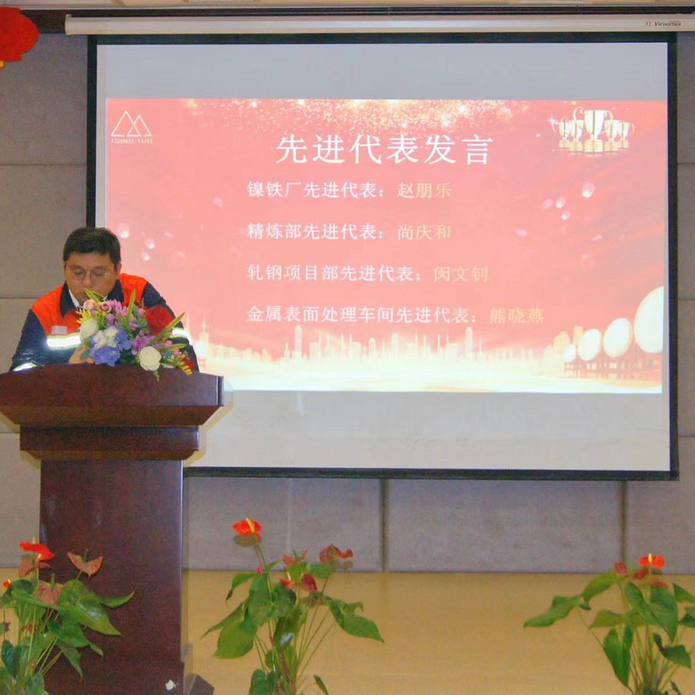 大会表彰了上半年各部门涌现的9位先进管理者和83位先进员工。镍铁厂赵朋乐、精炼部尚庆和、轧钢项目部闵文钊及金属表面处理车间熊晓燕4位先进员工代表依次发言,他们结合自身实际,交流工作心得,纷纷表示会珍惜荣誉、再接再厉,充分发挥模范带头作用,为企业持续健康稳定发展贡献力量。