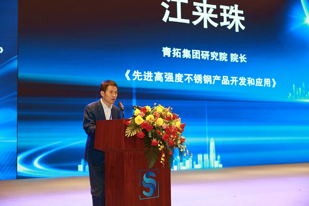 青拓集团研究院院长江来珠通过《先进高强度不锈钢产品开发和应用》报告,具体介绍了资源节约型高氮奥氏体不锈钢QN产品的屈服强度、点蚀当量、合金降本等情况,资源节约型高塑性双相不锈钢QD的优异性能及与普通钢种的各项对比,并着重强调了先进高强度不锈钢产品的耐腐蚀性能。